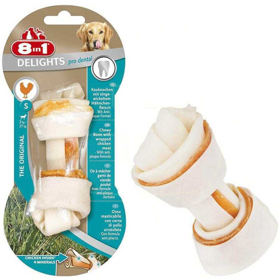 8in1 Delights Pro S Dental Düğümlü Tavuk Etli Köpek Kemiği, köpeklerin diş sağlığını desteklemek ve çiğneme ihtiyaçlarını karşılamak için özel olarak tasarlanmıştır. Gerçek tavuk etiyle zenginleştirilmiş formülü sayesinde köpeğinizin beğenisini kazanırken, sindirim sistemine de destek olur. Eğlenceli oyun saatleri ve eğitim anlarında kullanılabilecek, kaliteli ve doğal bir ödül sunar.