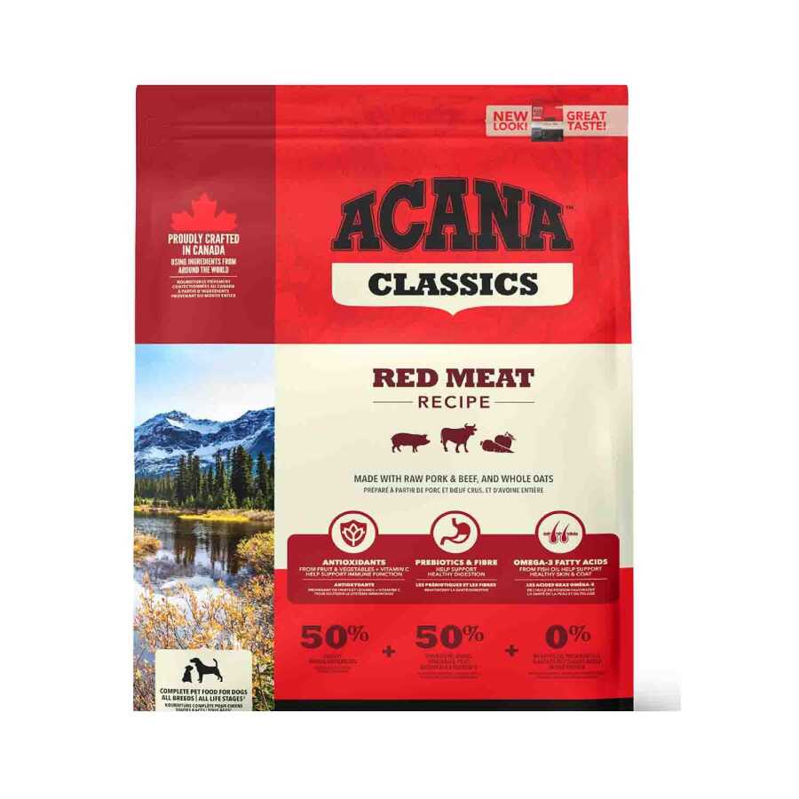 ACANA Classics Classic Red, tüm ırklar ve yaşam evreleri için uygun, doğal içeriklerle hazırlanmış yüksek kaliteli bir köpek mamasıdır. Köpeğinizin atalarının doğada tükettiği WholePrey™ oranlarında; çayırda otlayan kuzu, Angus sığırı ve Yorkshire domuzunun taze veya çiğ olarak kullanılmasıyla formüle edilmiştir. İçeriğindeki düşük glisemikli yulaf ve yüksek et proteini oranıyla kondisyonu artırır, sağlıklı kan şekeri seviyelerini destekler.