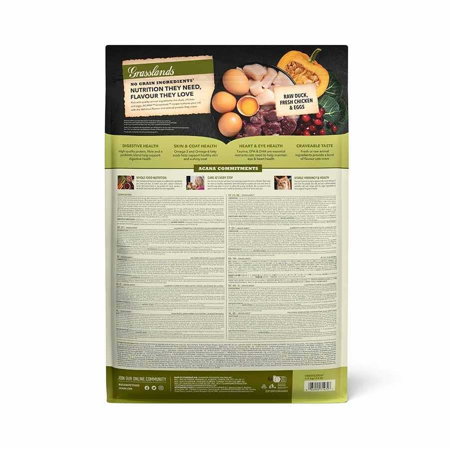 ACANA Grasslands, kedinizin doğal beslenme ihtiyacını karşılamak için özenle formüle edilmiş tahılsız bir kedi mamasıdır. Serbest dolaşan tavuk, ördek, hindi ve bıldırcın etlerinin yanı sıra taze yumurta ve balık gibi zengin hayvansal protein kaynakları içerir. Geniş otlaklardan ve temiz göllerden ilham alınarak hazırlanan bu mama, tüm ırk ve yaşam evresindeki kediler için uygundur.