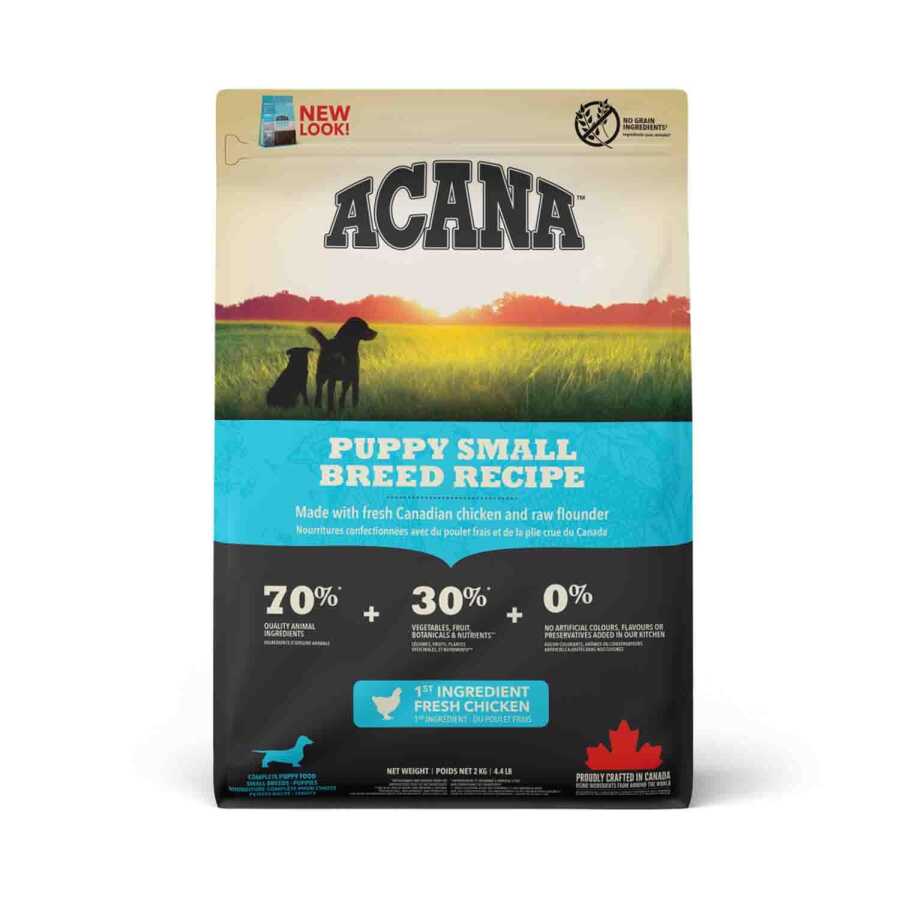 Acana Heritage Puppy Small Breed, 9 kg'a kadar olan küçük ırk yavru köpeklerin gelişim ihtiyaçlarına göre özel olarak formüle edilmiştir. Serbest dolaşan tavuk ve hindi eti, serbest avlanan pisi balığı, taze kuluçka yumurtaları ve bol güneşle olgunlaşan meyve-sebzelerle zenginleştirilen bu özel tarif, yavru köpeğinizin sağlıklı, enerjik ve güçlü bir şekilde büyümesine destek olur.