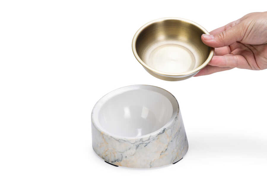 Beeztees DBL Kedi Mama Su Kabı, Paslanmaz Çelik, Bej Mermer Görünümlü, 14,5x3,3x7,6cm, 160ml
