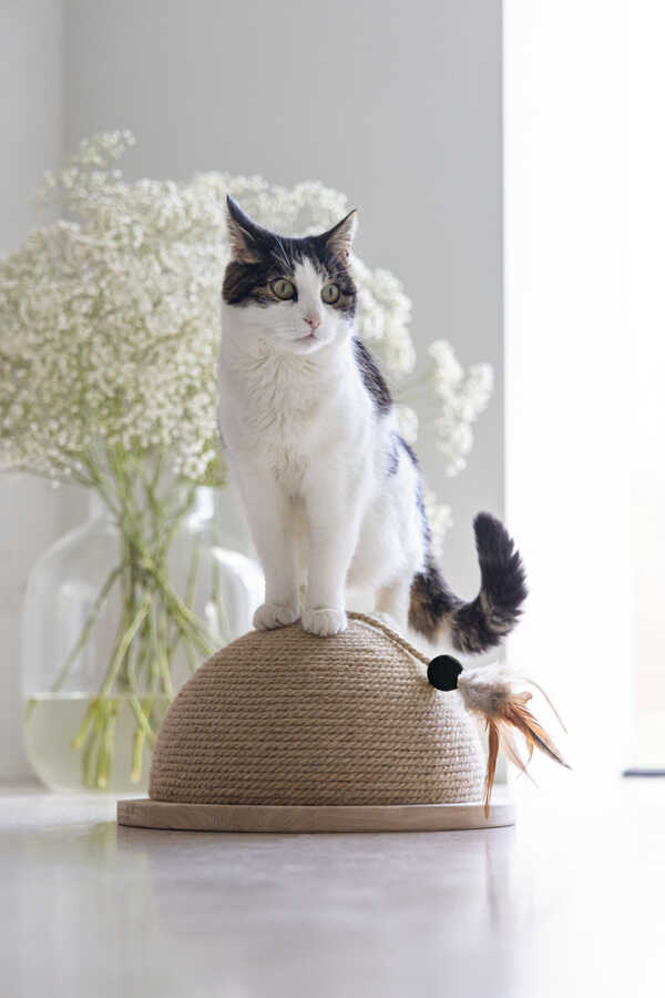 Kedinize benzersiz, güzel ve aynı zamanda harika bir tırmalama direği sunmak ister misiniz? O zaman Designed by Lotte Half Scratch Globe Vivi kesinlikle tavsiye edilir. İsminden de anlaşılacağı gibi bu tırmalama direği, kedinizin doyasıya tırmalayabileceği yarım bir küreden oluşmaktadır. Kürenin etrafına sarılı tırmalama kısmı jüt ipten yapılmıştır. Tırmalamaya ek olarak, bu tırmalama topu aynı zamanda oynamak için de harikadır. Bu, küreye bağlı tüylerle süslenmiş kedi oyuncağından dolayıdır. Kedinizin bu topu yatay veya dikey olarak tırmalamasını isteyip istemediğinizi seçebilirsiniz. Aslında, küreyi yere koyabilir, ancak duvara asmak için de seçebilirsiniz. Askı sistemi ve talimatlar küre ile birlikte verilmektedir. Designed by Lotte Half Scratch Globe Vivi, 7 kg'a kadar kediler için uygundur. Zemini çiziklere karşı korumak için, alt tabanın altına eklenebilen kaymaz kapaklar dahildir. - Yere koymak veya asmak için - Kaymaz kap dahil.