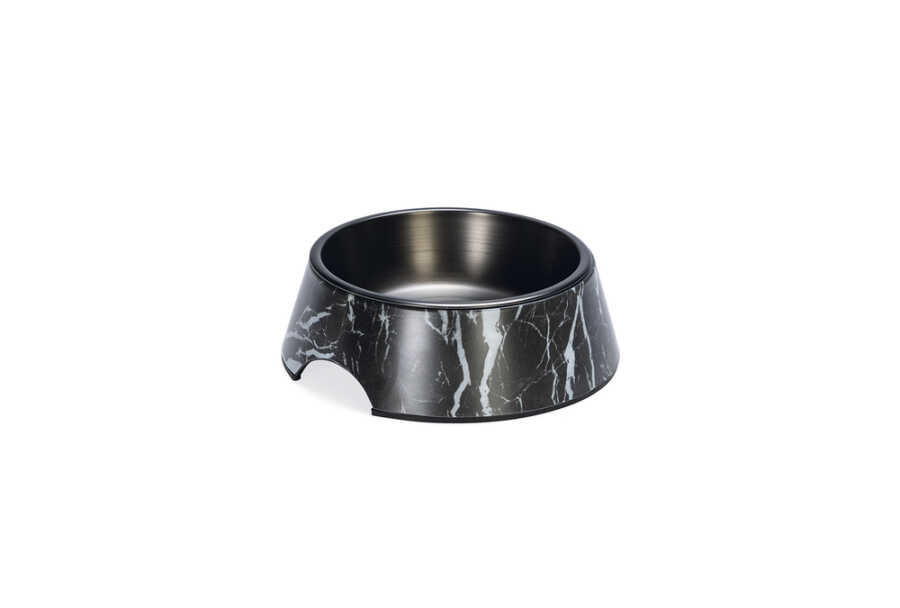 Beeztees DBL Köpek Mama Su Kabı, Mat Siyah Paslanmaz Çelik, Siyah Mermer Görünümlü, 17,5cm, 350ml