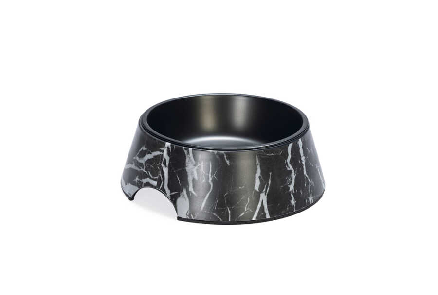 Beeztees DBL Köpek Mama Su Kabı, Mat Siyah Paslanmaz Çelik, Siyah Mermer Görünümlü, 22cm, 700ml