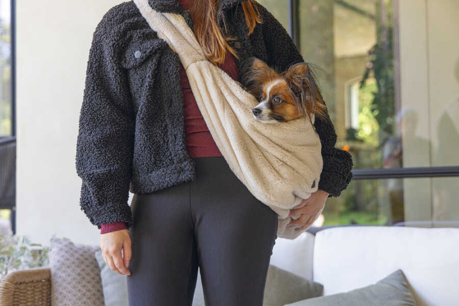 Bu Designed by Lotte Laki tasarımı küçük köpekler için harika bir taşıma çantasıdır. Bu şık taşıma çantası, küçük köpeğinizi veya yavru köpeğinizi rahatça taşımak için mükemmeldir. Çanta, hem size hem de köpeğinize ekstra konfor sağlayan yumuşak peluş malzemeden yapılmıştır. Taşıma çantası, ayarlanabilir bir omuz askısı ile donatılmıştır, bu da köpeğinizi sizin için rahat bir yükseklikte taşımanızı kolaylaştırır. Bu köpek çantasını vücudunuzun ön tarafında taşırsınız, bu da köpeğinizle çok daha fazla temas kurmanızı sağlar. Ayrıca, çanta, ödül maması veya poşet gibi şeyler için kolay bir depolama bölmesine sahiptir. Köpeğinizin güvenliği için, çanta, köpek tasmasını takabileceğiniz bir güvenlik kancası ile donatılmıştır. Ayarlanabilir kordon sayesinde, çantanın boyutunu ayarlayabilir ve köpeğinizin her zaman rahat etmesini sağlayabilirsiniz. - Yumuşak peluş malzemeden yapılmıştır - Ayarlanabilir omuz askısı - Tasma için güvenlik kancası - Optimal uyum için ayarlanabilir kordon - Maksimum taşıma ağırlığı 6.5 kg - 2 renkte mevcut Ölçüler: 48x20x35 cm