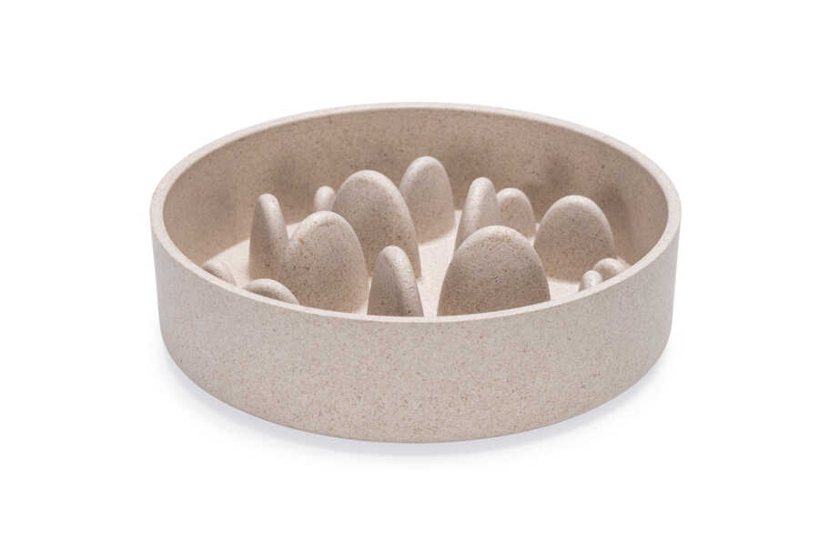 Beeztees DBL Köpek Yavaş Besleme Mama Kabı, Bambu, Bej, 17cm, 800ml