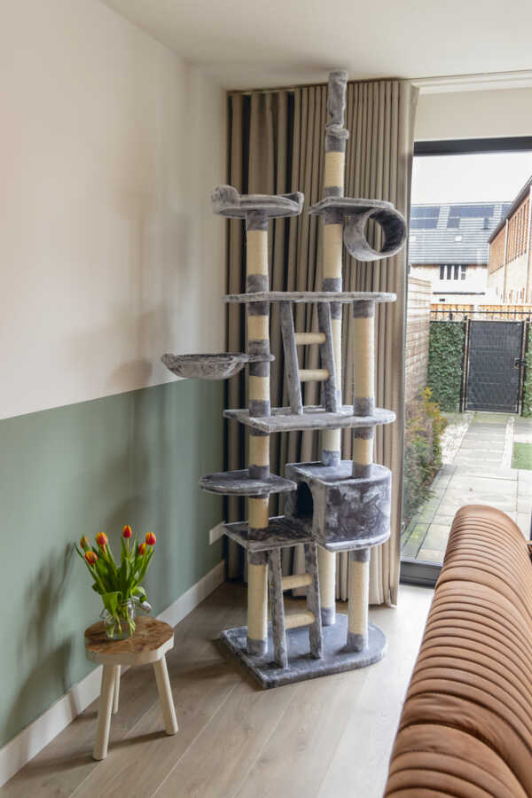 Beeztees Magnefiq Tırmalama Direği, kediniz için gerçek bir oyun cennetidir! Bu tırmalama mobilyası, küçük dostunuzu büyüleyici bir çekim gücüne sahiptir. Bu tırmalama direği, sayısız tırmalama direkleri, merdivenler ve harika uyuma yerleri içerir, bu da kedinizin biraz zaman harcamasını sağlayacaktır. Ayrıca tırmalama direği çok yüksektir, böylece kediniz tırmanabilir ve en yüksek platoda her şeyi gözlemleyebilir. Tırmalama direği tavana sabitlenebildiği için, stabilite güçlendirilmiştir. Üstelik tırmalama direği 220 ile 260 cm arasında ayarlanabilir, bu da tırmalama direğinin daha yüksek tavanlar için de uygun olmasını sağlar. Ürün özellikleri: - Direk kalınlığı: 9 cm - Sisal kalınlığı: 5,1 mm - Peluş kalitesi: 480gr/m2 Ölçüler: 70x50x220-260 cm
