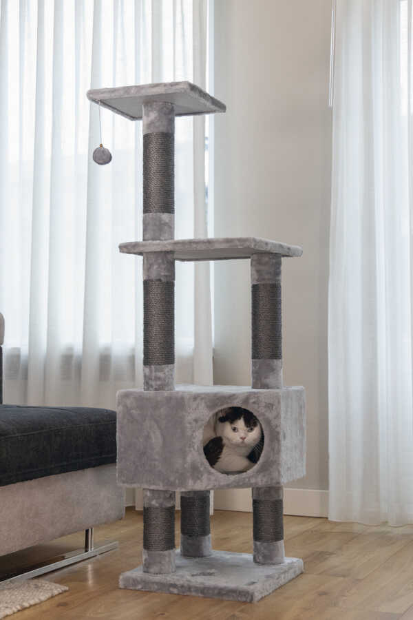 Bir mobilya tırmalama direği, her kedinin temel ekipmanları arasında yer alır. Beeztees Figado Tırmalama Direği ile güzel bir temel atmış olursunuz. Bu tırmalama direği, birkaç sisal direk içerir ve peluş ile daha da işlenmiştir. Kediniz büyük yüksekliklere çıkabilir, çünkü çeşitli platformlar bulunmaktadır. Ayrıca gerçek bir uyku yeri de vardır, burada kediniz korunaklı ve rahatsız edilmeden şekerleme yapabilir. Ekstra oyun eğlencesi için, en yüksek platformda güzel bir oyun topu bulunmaktadır. Ürün özellikleri: - Direk kalınlığı: 9 cm - Sisal kalınlığı: 6 mm - Peluş kalitesi: 480gr/m2 - 3 farklı renkte mevcuttur Ölçüler: 40x40x135 cm