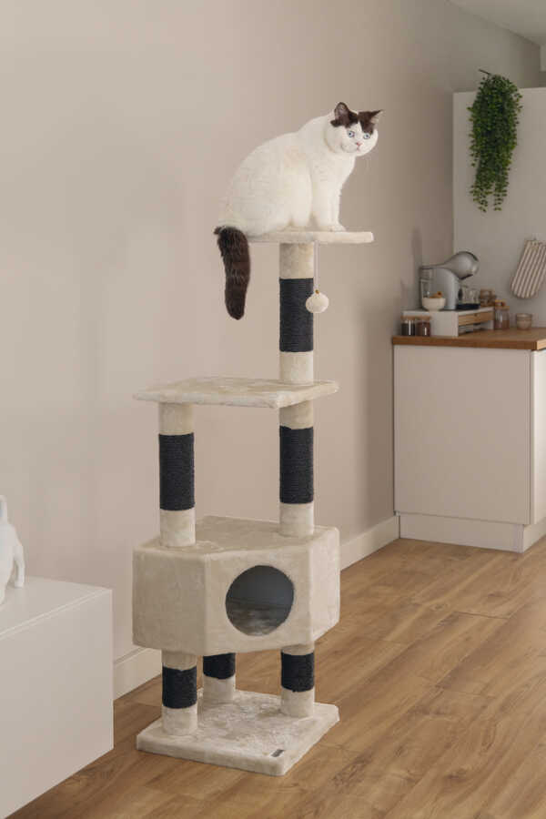 Bir mobilya tırmalama direği, her kedinin temel ekipmanları arasında yer alır. Beeztees Figado Tırmalama Direği ile güzel bir temel atmış olursunuz. Bu tırmalama direği, birkaç sisal direk içerir ve peluş ile daha da işlenmiştir. Kediniz büyük yüksekliklere çıkabilir, çünkü çeşitli platformlar bulunmaktadır. Ayrıca gerçek bir uyku yeri de vardır, burada kediniz korunaklı ve rahatsız edilmeden şekerleme yapabilir. Ekstra oyun eğlencesi için, en yüksek platformda güzel bir oyun topu bulunmaktadır. Ürün özellikleri: - Direk kalınlığı: 9 cm - Sisal kalınlığı: 6 mm - Peluş kalitesi: 480gr/m2 - 3 farklı renkte mevcuttur Ölçüler: 40x40x135 cm