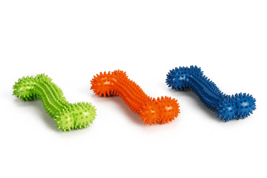 Beeztees Spikey Masaj Kemiği, köpeğinizin kemirebileceği bir köpek oyuncağıdır. Kemik üzerindeki dikenler, çiğnerken veya oynarken köpeğinizin diş etlerini masaj yapar. Diş etlerini masaj yapmak iyi kan dolaşımına katkıda bulunur. Spikey, ağıza ve dişlere hoş gelen kauçuktan yapılmıştır. Köpeğinizle oynamak ister misiniz? O zaman spikey'i fırlatın, köpeğinizin onu sadece birkaç saniyede geri getireceğini göreceksiniz. - Kauçuktan yapılmıştır - Dikenler diş etlerinde masaj etkisi yapar - Çeşitli renklerde Ölçüler: 17x7x3.5 cm