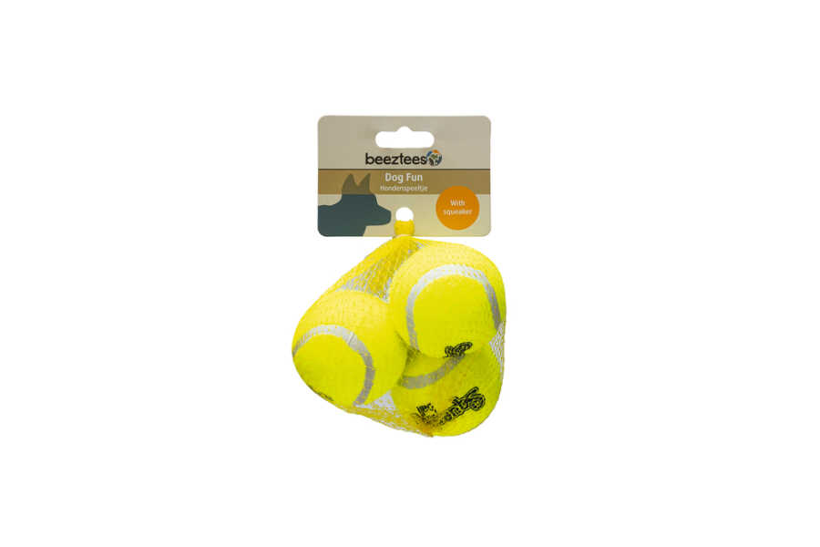Çoğu köpek, bir tenis topunun en güzel köpek oyuncağı olduğunu düşünür! Bu Beeztees Tenis Topları, standart bir tenis topundan daha eğlencelidir. Bunun nedeni, bu köpek topuna bir düdük eklenmiş olmasıdır. düdük sadece köpek için eğlenceli değil, aynı zamanda sizin için de faydalıdır. Yürürken tenis topunu sıkarak, köpeğinizin dikkatini çabucak çekersiniz ve onunla birlikte oynamak için size gelme ihtimali yüksektir. Parlak renk, topu kolayca bulmanızı sağlar. - Parlak renkte - Bir düdük içerir - 3 farklı boyutta mevcuttur Ölçümler: - Çap 5 cm - 3 adet paketlenmiş - Çap 6.5 cm - 3 adet paketlenmiş (aynı zamanda bir tenis topu fırlatıcı için de uygun) - Çap 8 cm - 2 adet paketlenmiş