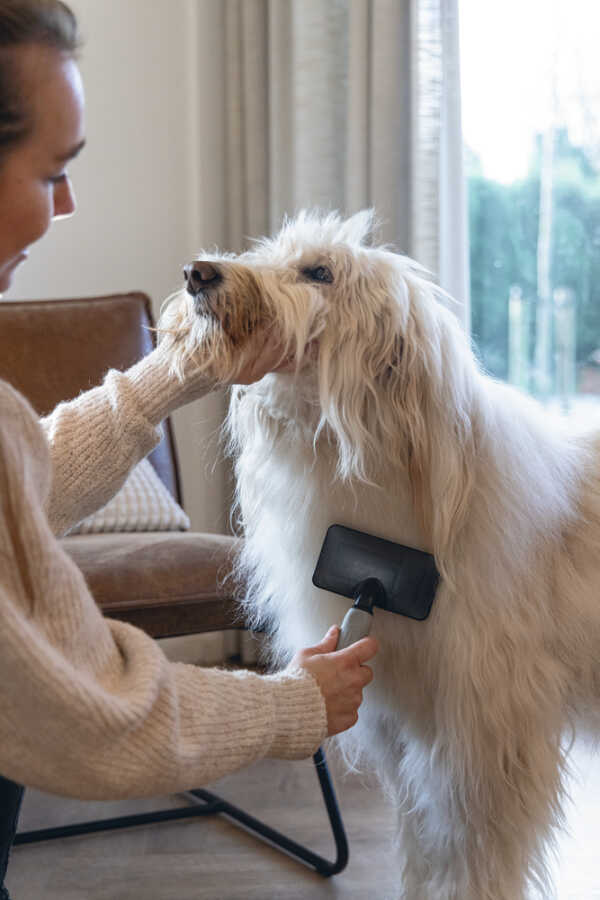 Köpeğinizin tüylerine güzel bir parlaklık katın Beeztees Slicker Brush ile. Bu fırça, köpeğinizin tüylerinden ölü tüyleri ve kirleri temizler. Ayrıca küçük düğümleri veya hafif matlaşmaları çıkarabilirsiniz. Düzenli fırçalama, köpeğinizin tüylerini sağlıklı ve parlak tutar. Fırçalamaya bacaklardan başlamak ve yukarı doğru çalışmak en iyisidir. Her zaman tüylerin çıkış yönünde fırçalayın. - Yumuşak tutuş - Orta uzunluktaki tüylere ideal - 3 modelde mevcut Ölçüler: - Küçük: 17.5x7x3 cm - Orta: 18x10x2 cm - Büyük: 19x12x4 cm