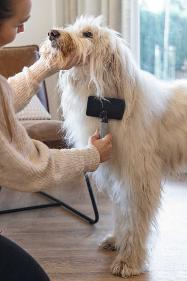 Köpeğinizin tüylerine güzel bir parlaklık katın Beeztees Slicker Brush ile. Bu fırça, köpeğinizin tüylerinden ölü tüyleri ve kirleri temizler. Ayrıca küçük düğümleri veya hafif matlaşmaları çıkarabilirsiniz. Düzenli fırçalama, köpeğinizin tüylerini sağlıklı ve parlak tutar. Fırçalamaya bacaklardan başlamak ve yukarı doğru çalışmak en iyisidir. Her zaman tüylerin çıkış yönünde fırçalayın. - Yumuşak tutuş - Orta uzunluktaki tüylere ideal - 3 modelde mevcut Ölçüler: - Küçük: 17.5x7x3 cm - Orta: 18x10x2 cm - Büyük: 19x12x4 cm