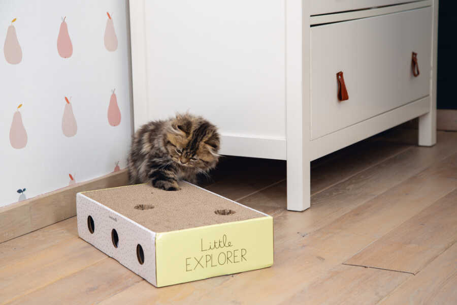 Bu eğlenceli Beeztees Riva Tırmalama Kutusu çeşitli unsurlar içerir. Adından da anlaşılacağı gibi tırmalamak için kullanılabilir. Bu tırmalama kutusu, tırmalamak için yeterli alanı olan kartondan yapılmıştır. Ayrıca, kutuda oyun topları da vardır, böylece yavru kediniz onları aramayı öğrenir ve yeni sesler öğrenir. Son olarak, kutu aynı zamanda bir koku alışkanlık kutusu olarak da kullanılabilir. Bu kutu ile yavru kedinizi evin içinde ve çevresinde belirli kokulara alıştırabilirsiniz. Koku nesneleri kutuya yerleştirilebilir (örn. yapraklar), böylece yavru kediniz yeni kokulara oyunlu bir şekilde alışabilir. - Kartondan yapılmıştır - Sosyalleşme döneminde yardımcı olur Ölçüler: 25x42x10 cm