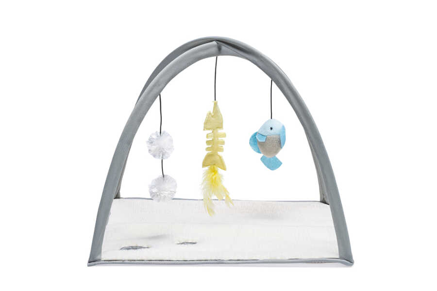 Oh ne kadar mutlu olacak kediniz bu kedi oyuncağı Playground Xabia ile. Farklı malzemelerden dolayı, jüt ve taklit koyun derisi mat gibi, yavru kedinizi farklı malzemelere alıştırmayı öğretirsiniz. Playground Xabia aynı zamanda bir 'yavru kedi jimnastiği'ne benzer. Bu, oyun matının üzerindeki gergin kemerlerden kaynaklanmaktadır. Kemerlerin üzerinde elastik bir kordonda asılı üç oyuncak olacak. Kedi oyuncağı, bir peluş balık, tüylerle bir balık kemiği ve iki çıtçıtlı folyo top içerir. Beeztees Kitten Playground Xabia kaymayı önlemek için kaymaz çiviler içerir. - Jüt ve taklit koyun derisi mat - Oyun kemerleri içerir - 3 kedi oyuncağı içerir - Kaymaz altlık içerir Ölçü: 40x40x33 cm