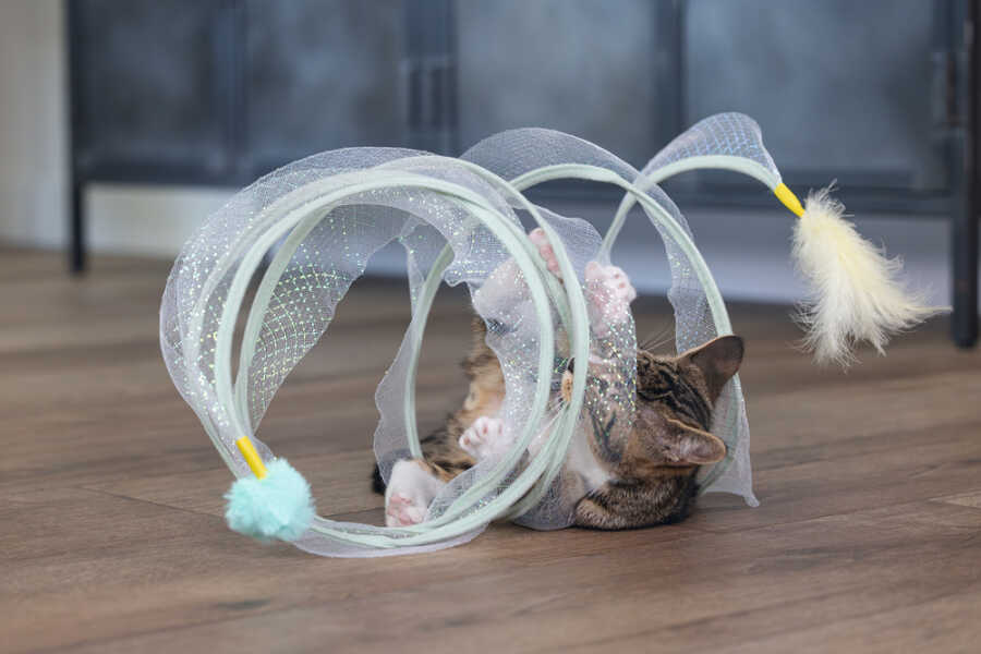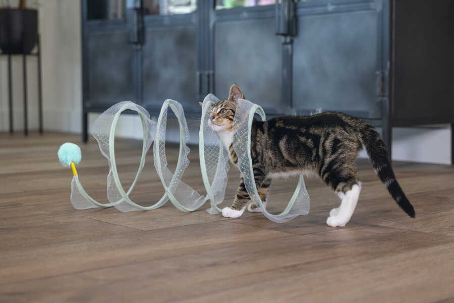 Beeztees Kitten Play Spiral Gabi, bir kedi tüneli ve oyuncak bir arada. Aslında, yavru kediniz içinden geçebilir. Bu tünelde yer alan metal halkalar, spirali açık tutar. Açık tasarım sayesinde, tüylü dostunuz her şeyi sürekli gözlemleyebilir. Dış kısmı parıldayan bir kumaşla kaplıdır ve uçlarında ekstra meydan okuma sağlayan eğlenceli oyun elementleri bulunur. Bir uçta bir tüy, diğer uçta bir oyun topu bulunur. Yavru kediniz bu oyuncakla sonsuza kadar eğlenebilir. Güzel bir ekstra olarak, spiralı kullanmadığınız zaman katlayabilirsiniz. Küçük tüylü dostunuzun bu harika yavru kedi oyuncağı ile keşfetmesine izin verin. - Metal ve kumaştan yapılmıştır - İki oyun elementi içerir - Saklaması kolay Ölçüler 60x25x25 cm