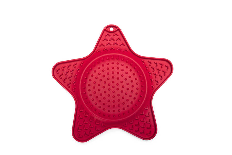 Beeztees Lick Mat Star ile köpeğiniz için lezzetli bir yemek hazırlayabilirsiniz. Bu yalama matı sadece eğlenceli bir aktivite sağlamakla kalmaz, aynı zamanda köpeğinizin atıştırmalığını daha uzun süre keyifle yemesini de sağlar. Yalama matı, köpeğinizin yemeğini hızlıca yemesini önler, çünkü yiyecekler matın oyuklarına yerleşir. Matı yalamak köpeğinize rahatlama sağlar ve yalama matının dokusu dilin temizlenmesine yardımcı olur. Bu silikon yalama matı hakkında ekstra eğlenceli olan şey, yıldızın iç kısmına ve uçlarına farklı bir tat uygulayabilmenizdir. Yalama matını dolgu ile birlikte dondurun ve köpeğinize sıcak yaz günlerinde lezzetli bir taze yemek verin. Yalama matı bulaşık makinesinde temizlenebilir. - Yavaş yemeyi teşvik eder ve hızlı yemeyi önler - Köpeği rahatlatır ve stresi azaltır - Ağız hijyenini destekler - Silikondan yapılmıştır - Bulaşık makinesinde güvenle yıkanabilir - Mikrodalgada 600 Watt'a kadar güvenle kullanılabilir Ölçüler: 24x20x1cm