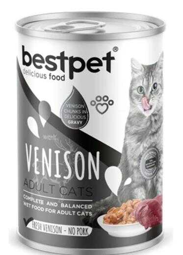 Bestpet Geyik Etli Konserve Yetişkin Kedi Maması, kedinizin severek tüketeceği lezzetli ve besleyici bir yaş mamadır. Geyik eti içeriği ile protein açısından zengin olan bu mama, sağlıklı ve dengeli bir beslenme sunar. Vitamin ve mineral katkılı formülü sayesinde kedinizin genel sağlığını destekler.