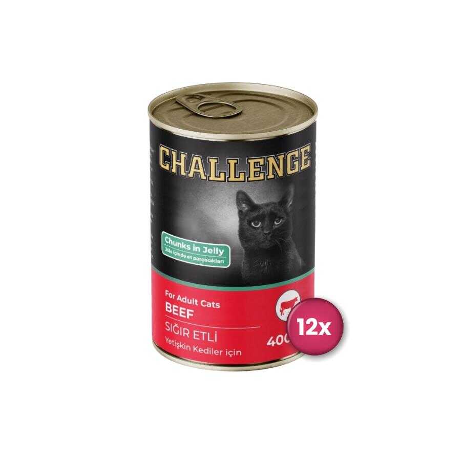Challenge Sığır Etli Yetişkin Kedi Konservesi, yetişkin kediler için tam ve dengeli beslenme sağlayan lezzetli bir yaş mamadır. %100 hayvansal kaynaklı protein içeren bu ürün, dilimlenmiş biftekli parçalar ve et suyuyla zenginleştirilmiştir. İçeriğinde %10 oranında biftek bulunur ve ürünün yaklaşık %35’i dilimlenmiş parçalardan oluşur. Koruyucu ve renklendirici içermez. Vitamin ve mineral katkıları sayesinde sağlıklı bir sindirim ve bağışıklık sistemini destekler.