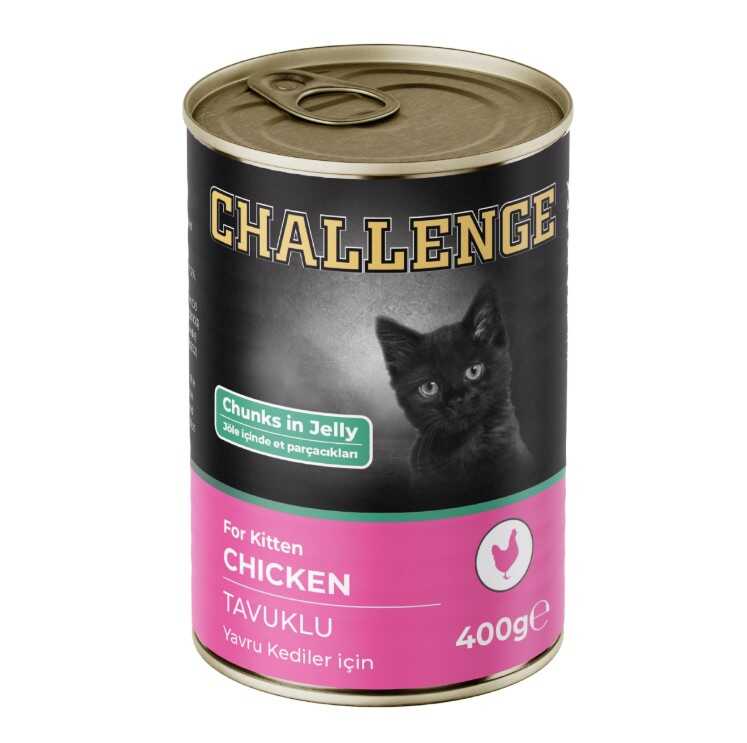 Challenge Tavuklu Yavru Kedi Konservesi, yavru kedilerin gelişim döneminde ihtiyaç duyduğu tüm besinsel öğeleri karşılamak üzere özenle hazırlanmış tam bir yaş mamadır. %60 oranında tavuk içeren dilimli parçaları ile zengin bir hayvansal protein kaynağı sunar. Yüksek nem oranı sayesinde sıvı tüketimini destekler, renklendirici ve koruyucu maddeler içermez. Yavru kedinizin sağlıklı büyümesini desteklemek için ideal bir seçimdir.
