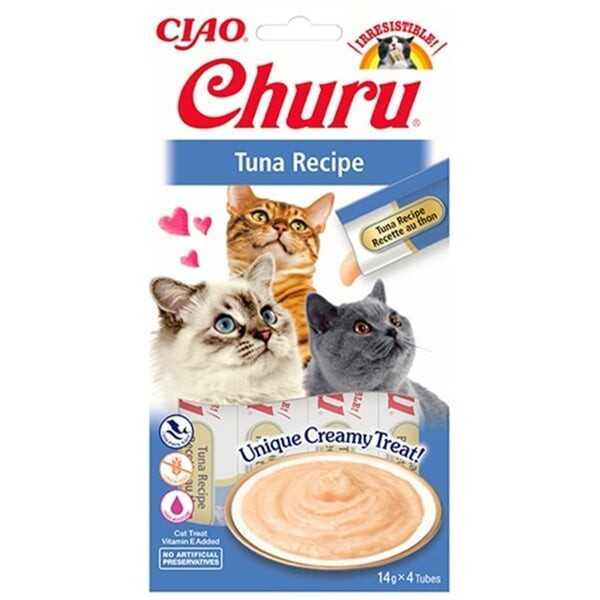Ciao Churu Cream Ton Balıklı Kedi Ödül Kreması, kediler için özel olarak formüle edilmiş lezzetli bir tamamlayıcı yemdir. %30 oranında gerçek ton balığı içeriğiyle kedinize sağlıklı ve keyifli bir ödül sunar. Yumuşak dokusu sayesinde hem direkt tüpten hem de mama kabına eklenerek kolayca tüketilebilir.