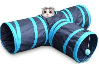 Üç Yollu Kedi Tüneli, birden fazla kedinin aynı anda oyun oynayabileceği bir oyuncak modelidir.
