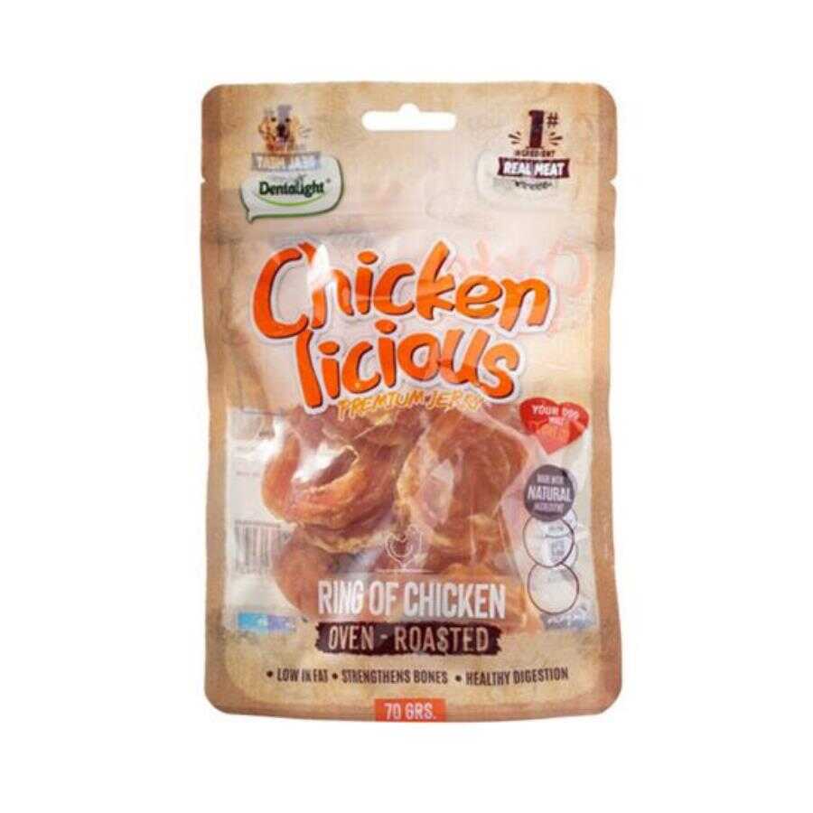 Dentalight Chicken Ring Tavuk Etli Köpek Ödül Halkası, gerçek tavuk eti kullanılarak hazırlanan ve köpeklerin doğal çiğneme içgüdüsünü en keyifli şekilde karşılayan premium bir atıştırmalıktır. Özel halka (ring) formu sayesinde köpeğinizin ağzında daha uzun süre kalan bu ödül, hem çene kaslarını çalıştırır hem de uzun süreli bir tatmin sağlar.