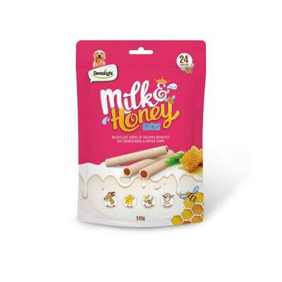 Dentalight Süt ve Ballı Köpek Ödül Çubukları, köpeklerin ödül anlarını daha yumuşak ve tatlı bir aroma ile taçlandırmak için özel olarak geliştirilmiştir. Sütün besleyici imajı ile balın iştah açıcı kokusunu bir araya getiren bu çubuklar, hem yavru hem de yetişkin dostlarımız için günlük rutinleri daha eğlenceli hale getiren tamamlayıcı bir atıştırmalıktır.