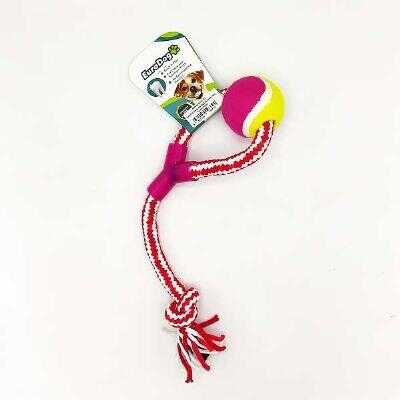 Eurodog Diş İpi Tenis Toplu Kırmızı Beyaz Köpek Oyuncağı 40 cm, köpekler için oyun oynarken diş temizliğine yardımcı olan, tenis topu ve sıkıştırılmış pamuk ipliklerinden oluşan dayanıklı bir diş ipi köpek oyuncağıdır. Kemirme ihtiyacını giderirken aynı zamanda köpeğinizin diş yapısının güçlenmesine yardımcı olur.