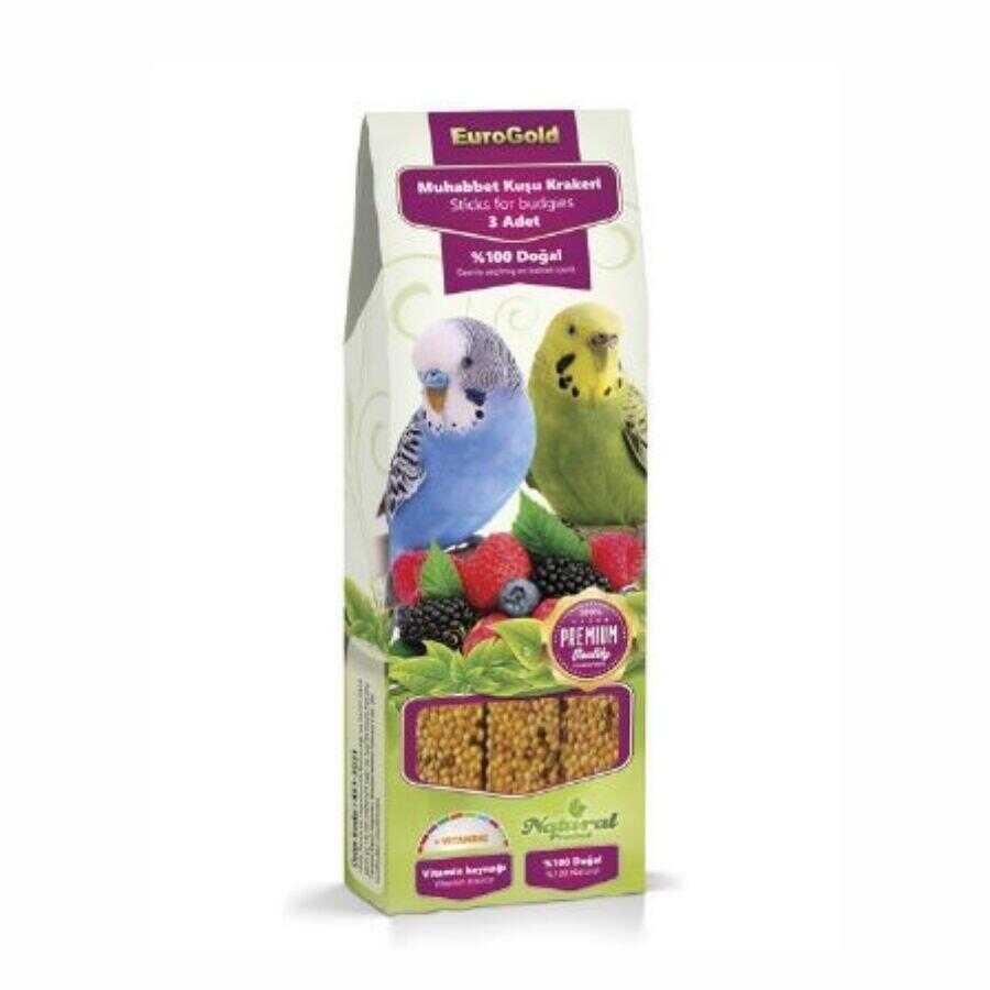 EuroGold Muhabbet Kuşu Meyveli Kraker, kuşunuzun hem beslenmesine katkı sağlayan hem de oyun ve egzersiz yapmasını teşvik eden sağlıklı ve lezzetli bir ödül mamasıdır. Yüksek kaliteli tahıllar, tohumlar ve bal içeren bu krakerler, kuşunuzun doğal gagalama davranışını desteklerken aynı zamanda aktif kalmasını sağlar. Özenle seçilmiş içerikleri sayesinde muhabbet kuşunuzun beslenme rutinine lezzetli bir katkı sunar.