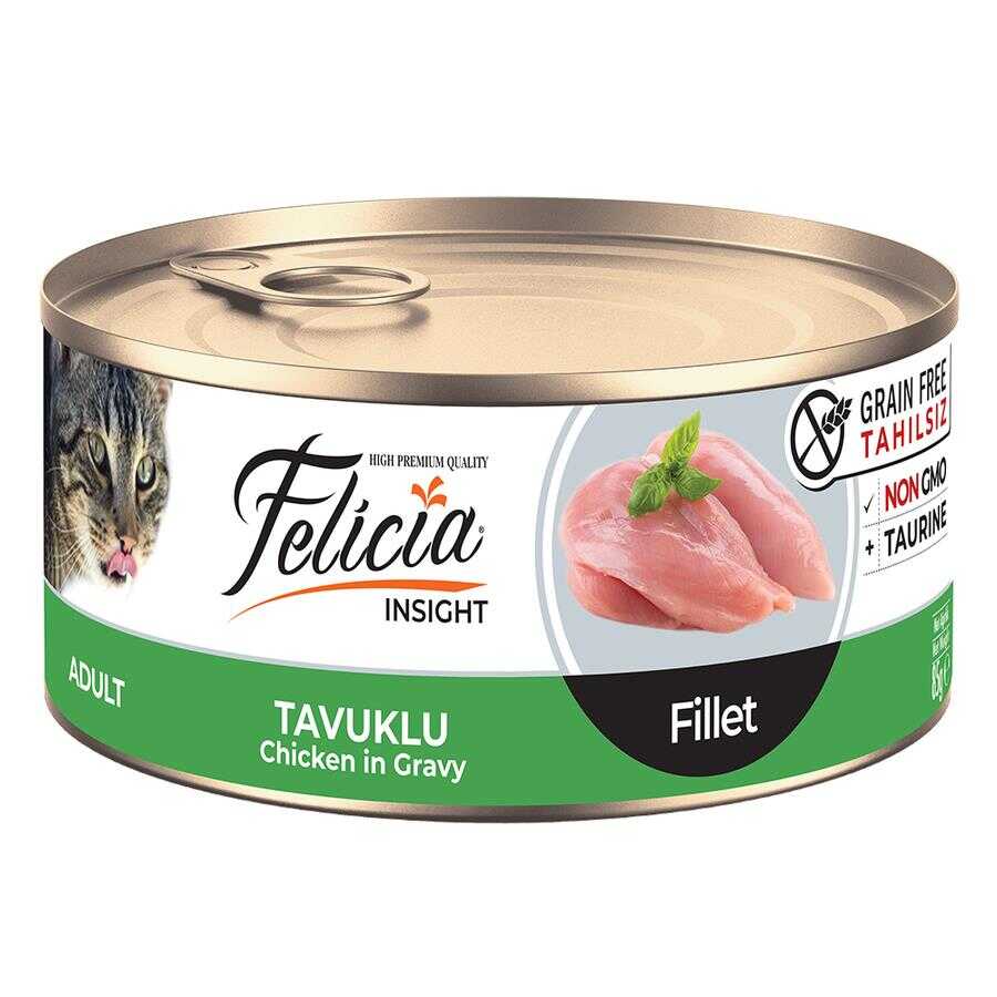 Felicia Tahılsız 85 gr Tavuk Filetolu Yaş Kedi Maması, yetişkin kediler için veteriner hekimler ve beslenme uzmanları tarafından özenle formüle edilmiştir. Yüksek tavuk eti oranı ve tahılsız yapısı ile hassas bünyeli kediler için ideal bir beslenme sunar. Taurin desteği, sağlıklı kalp ve göz fonksiyonları için katkı sağlarken, soya ve GDO içermeyen yapısıyla güvenli bir mama deneyimi sunar.