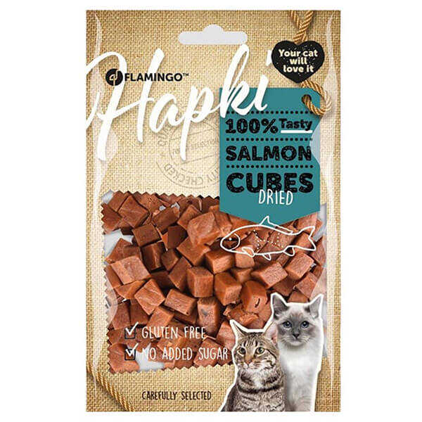 Flamingo Hapki Somonlu Glutensiz Küp Kedi Ödülü, kedinizin günlük beslenme rutinine sağlıklı ve lezzetli bir katkı sağlar. Yüksek proteinli somon içeriği ve glutensiz yapısıyla özellikle hassas sindirime sahip kediler için idealdir. Küp formu sayesinde kolayca çiğnenebilir ve tüketimi pratiktir.