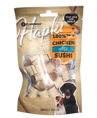 Flamingo Chicken Sushi, köpekler için özel olarak hazırlanmış, düşük yağ ve yüksek protein oranına sahip doğal içerikli bir ödül mamasıdır. Tavuk ve balık etinin birleşimiyle oluşturulmuş suşi formundaki bu lezzetli atıştırmalık, köpeğinizin sağlıklı beslenmesini desteklerken ona keyifli bir ödül anı sunar. Şeker ve gluten içermeyen yapısıyla hassas köpekler için de uygundur. Tazeliğini koruyan, açılıp kapanabilen ambalajı sayesinde pratik kullanım sağlar.