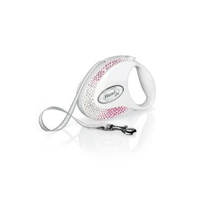 Flexi Glam Swarovski Otomatik İp Köpek Gezdirme Kayışı 5m (Beyaz)