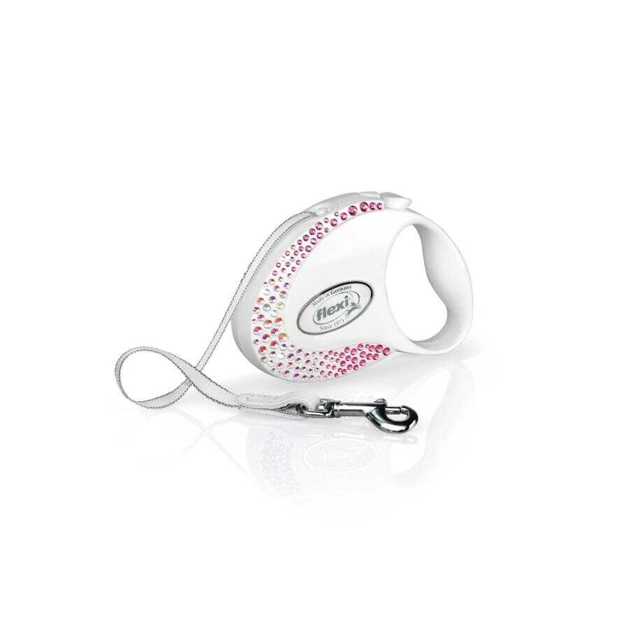 Flexi Glam Swarovski Otomatik İp Köpek Gezdirme Kayışı 3m (Beyaz)