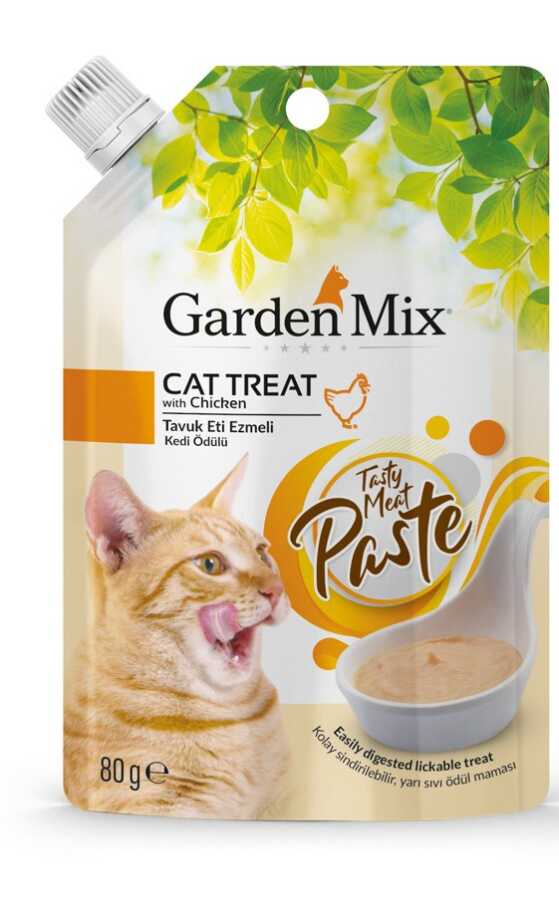Gardenmix Tavuk Eti Ezmeli Kedi Ödülü, kedinizin severek tüketeceği, kolay sindirilebilir ve yüksek kaliteli içeriklerle hazırlanmış yarı sıvı bir tamamlayıcı mamadır. %35 tavuk göğsü ve %10 oranında tavuk yüreği ile karaciğeri içeren bu formül, günlük protein ihtiyacını destekler. Taze tutmayı sağlayan özel kapaklı ambalajı sayesinde pratik ve hijyenik bir kullanım sunar.