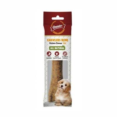 Gnawlers Tavuklu Ödül Kemiği, köpeklerin favorisi olan tavuk aromasıyla zenginleştirilmiş lezzetli ve besleyici bir atıştırmalıktır. Doğal kolajen içeriğiyle diş ve kemik sağlığını desteklerken, çiğneme ihtiyacını karşılayarak çene kaslarının gelişimine katkı sağlar. Üründeki doğal antioksidanlar ve vitaminler, bağışıklık sistemini güçlendirirken, dengeli lif oranı sindirim sistemi sağlığını destekler. Bitkisel protein, organik iz elementler ve küçük peptid proteinleri gibi değerli bileşenlerle formüle edilen bu ödül, yavru ve yetişkin köpeklerin günlük beslenme rutinine sağlıklı bir katkı sağlar.