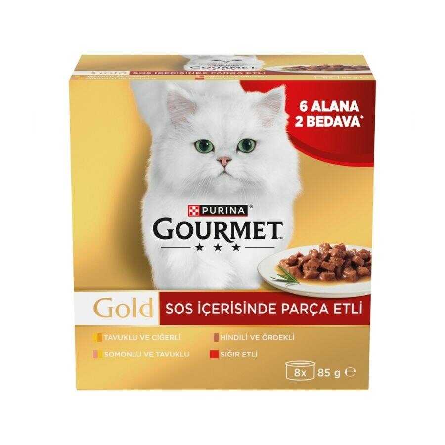 - Gourmet Sos İçerisinde Parça Etli Hindili ve Ördekli Yetişkin Kedi Konservesi 85 gr (2 Adet)