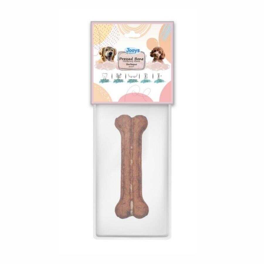 Jooys Barbekü Soslu Pres Kemik, %100 sığır derisinden üretilmiş olup lezzetli barbekü aromasıyla köpeğinizin çiğneme ihtiyacını karşılamaya yardımcı olur. Ağız sağlığını destekleyen bu özel formül, kolay sindirilebilir yapısı sayesinde hem güvenli hem de keyifli bir çiğneme deneyimi sunar.