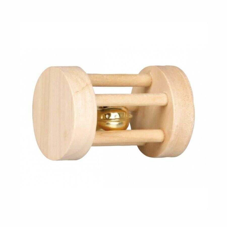 Kemirgenler için çıngıraklı, ahşap oyuncak. Kenarları yuvarlatılmıştır.
