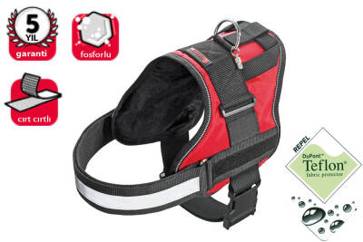 Karlie Teflon Reflektörlü Göğüs Tasması, dış mekân yürüyüşleri için özel olarak tasarlanmıştır. Reflektörlü yapısı sayesinde düşük ışık koşullarında bile görünürlüğü artırır. Krom kaplama metal parçaları, aşırı sıkmayı önleyici mekanizması ve güvenli kilit sistemiyle hem konfor hem de güvenlik sağlar. Kir ve toza karşı dayanıklı teflon kaplama malzeme sayesinde uzun yıllar boyunca ilk günkü görünümünü korur. Ayrıca üzerindeki isimlik bölmesi sayesinde köpeğinizin kimlik bilgilerini taşıyabilirsiniz. XS boyutundaki bu model 44-50 cm arasında ayarlanabilir ve 25 mm kalınlığa sahiptir. Kırmızı rengiyle dikkat çeker ve şık bir görünüm sunar.