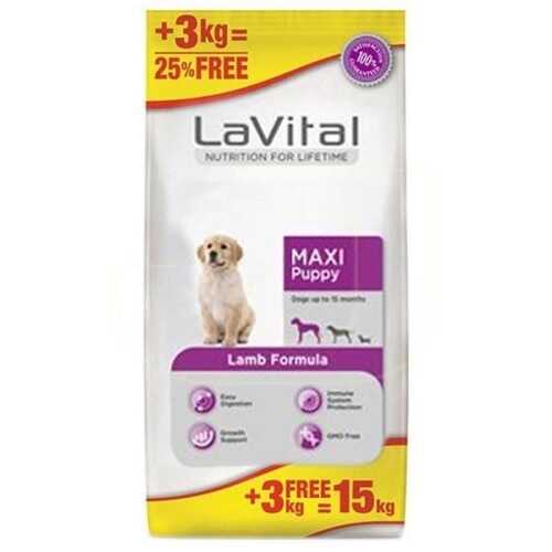 LaVital Kuzu Etli Büyük Irk Yavru Köpek Maması, 2 ila 15 ay arası büyük ırk yavru köpeklerin büyüme dönemindeki özel besin ihtiyaçlarını karşılamak üzere formüle edilmiştir. Sindirim sisteminin en hassas olduğu bu dönemde, bağırsak florasını destekleyen prebiyotik içeriği ile sağlıklı bir sindirimi destekler. DHA ve EPA bakımından zengin içeriğiyle bağışıklık sistemini güçlendirirken, büyüme sürecini destekleyen kaliteli proteinlerle sağlıklı gelişimi teşvik eder.