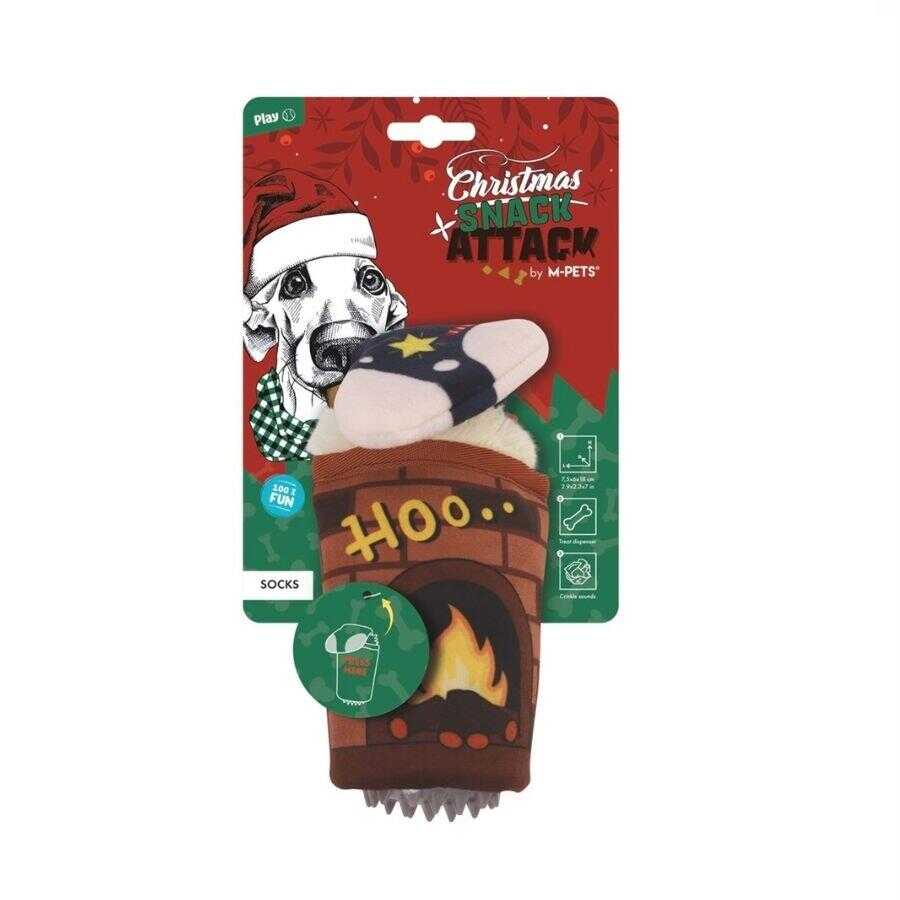 M-PETS® CHRISTMAS SNACK ATTACK serisinin Socks modeli, köpeğinizin yılbaşı eğlencesine eğlenceli bir dokunuş katıyor. Ödül hazneli yapısıyla hem zihinsel hem de fiziksel aktivite sağlayan bu oyuncak, tatlı çorap tasarımı ve özel crinkle sesi ile dikkat çeker. İçine yerleştirilen ödül mamalar sayesinde uzun süreli ilgi sağlar, köpeğinizin doğal arama ve çiğneme içgüdülerini destekler.