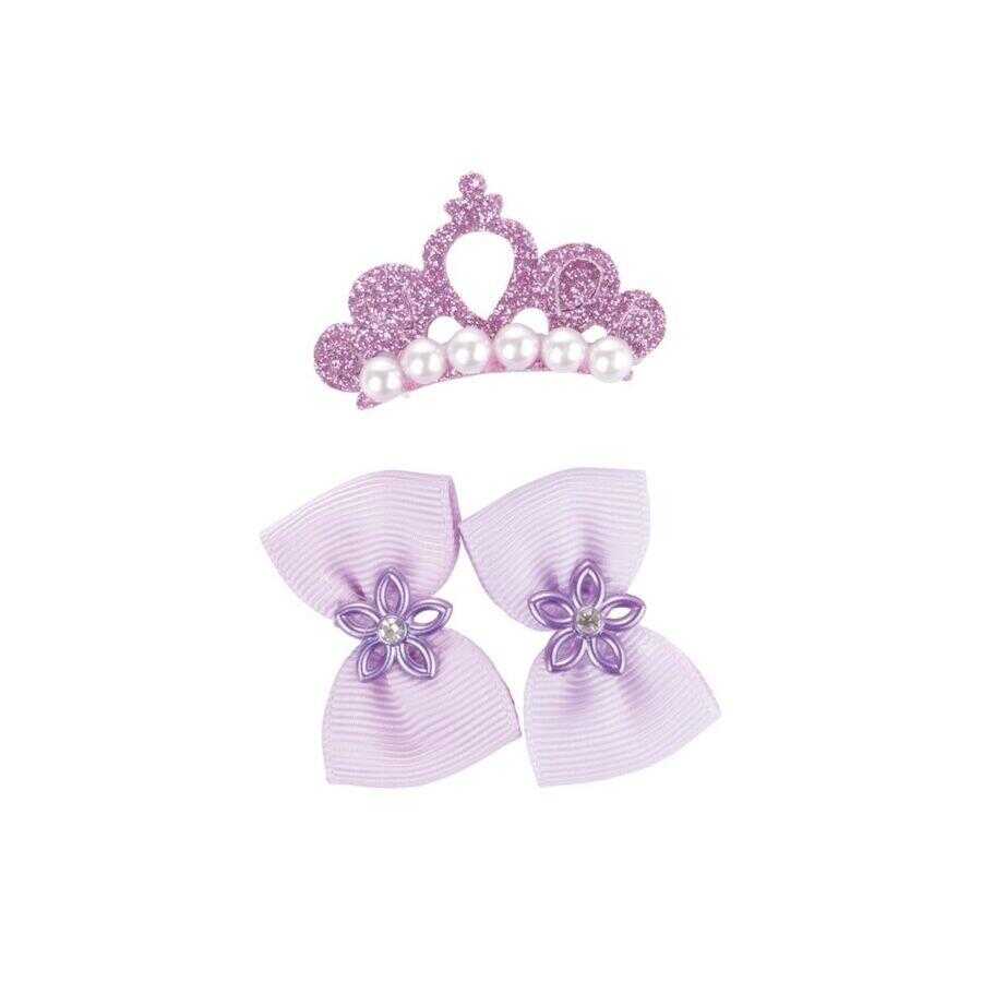 M-PETS Glam Köpek ve Kediler İçin Aksesuar Toka Seti - Mor, taç ve fiyonk detaylarıyla evcil dostunuza şıklık ve zarafet kazandırır. Mor rengin ışıltısıyla dikkat çeken bu set, özel günlerde ve günlük kullanımda zarif bir tamamlayıcı olarak öne çıkar. Hafif ve tüy dostu yapısı sayesinde konfor sunar; dayanıklı malzemeleri ile uzun süreli kullanım sağlar. Tokalar, güvenli sabitleme sistemiyle tüylerde sabit kalır ve kayma yapmaz.