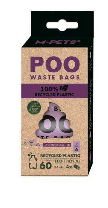 M-PETS®'in %100 geri dönüştürülmüş plastikten üretilmiş yeni nesil POO torbaları, hem çevre dostu hem de kullanışlı bir temizlik çözümü sunar. Dayanıklı ve sızdırmaz yapısıyla köpeğinizin dışkısını güvenli bir şekilde toplamanıza yardımcı olur. Farklı kokularla (gül, lavanta, limon, nane) kötü kokuları örterek hijyenik ve keyifli bir kullanım sağlar.