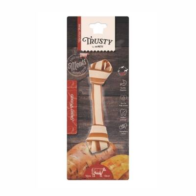M-PETS Trusty Knotted Bone Sweet Potato, büyük ırk köpekler için özel olarak tasarlanmış, dana aromalı ve tatlı patatesli içeriğiyle sağlıklı ve lezzetli bir çiğneme atıştırmalığıdır. 20,3 cm uzunluğundaki bu etkileyici düğüm kemik, %100 derisiz (rawhide-free) formülüyle kolay sindirim sunar. Düşük yağ ve yüksek protein oranı sayesinde dengeli bir ödül alternatifi oluşturur. Tatlı patates, tavuk ve sığır etiyle zenginleştirilen bu tarif, diş etlerini güçlendirir, plak ve tartar oluşumunu azaltır. Hem ağız sağlığını hem de kemik gelişimini destekler.
