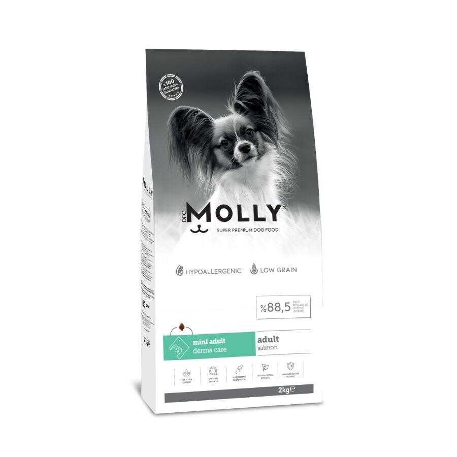 Molly Derma Care Köpek Maması, mini ırk yetişkin köpeklerin cilt ve tüy sağlığını desteklemek amacıyla özenle formüle edilmiştir. Somon proteini, E vitamini ve Omega 3-6 yağ asitleri ile zenginleştirilen bu özel formül, bağışıklık sistemini güçlendirir ve cildi enfeksiyonlara karşı korur. Yüksek kaliteli içeriklerle, ileri ekstruder teknolojisi kullanılarak üretilmiştir.