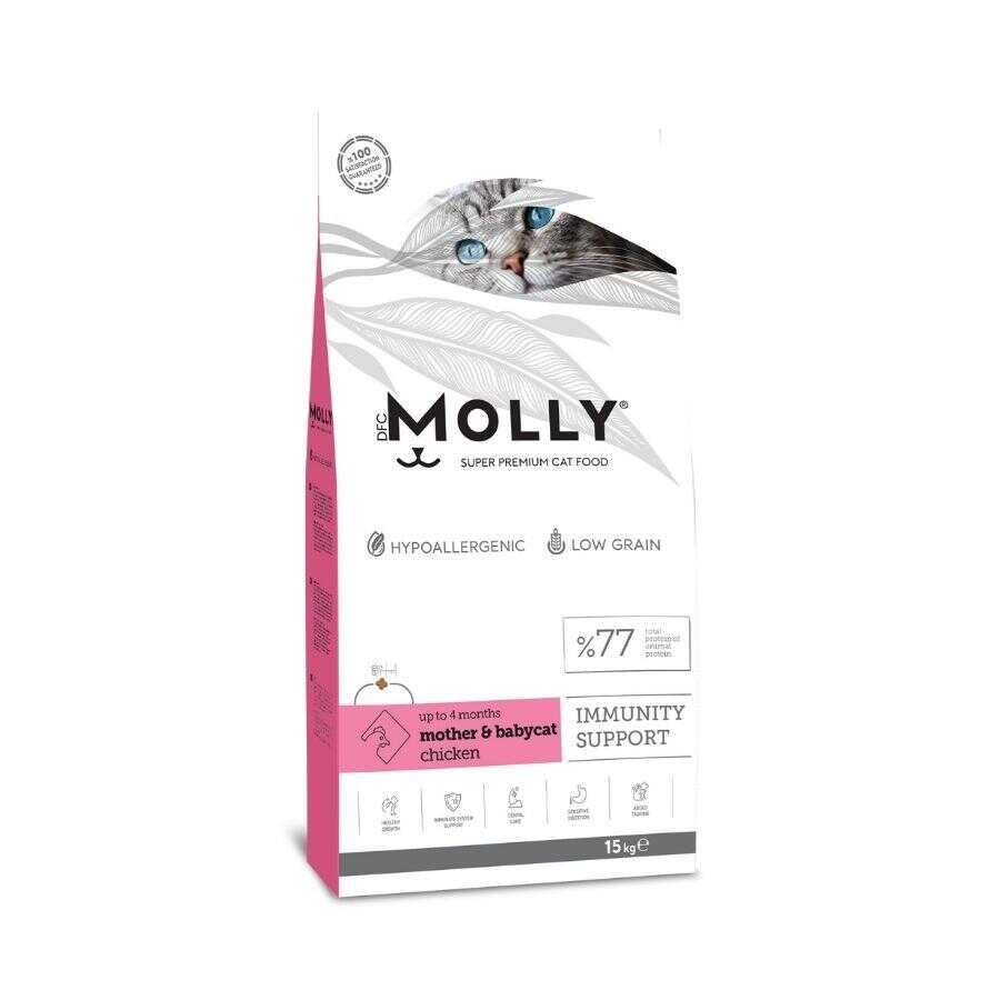 Molly Tavuklu 4 Aya Kadar Yavru Kedi Maması, doğumdan itibaren 4 aya kadar olan yavru kediler ile hamile ve emziren anne kediler için profesyonel beslenme uzmanları tarafından özel olarak formüle edilmiştir. Yüksek sindirilebilir içerikleri ve zengin besin profili ile yavru kedilerin büyüme sürecinde ihtiyaç duyduğu tüm vitamin, mineral ve enerji ihtiyacını karşılamaya yardımcı olur.