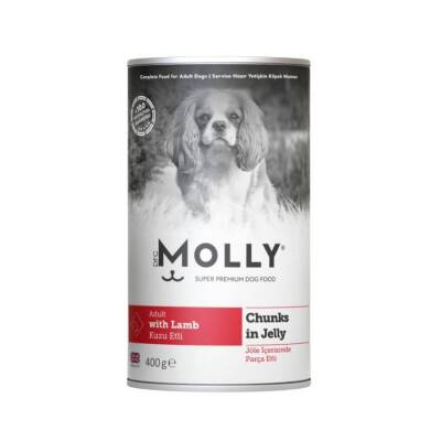 Molly Jöle İçinde Parça Kuzu Etli Yetişkin Köpek Konservesi 400gr, lezzetli kuzu eti ve jöle kıvamındaki yapısıyla köpeğinizin iştahını kabartır. Yüksek protein içeriği sayesinde kas gelişimini desteklerken, yumuşak et yapısıyla kolay sindirilebilir ve mide dostudur.