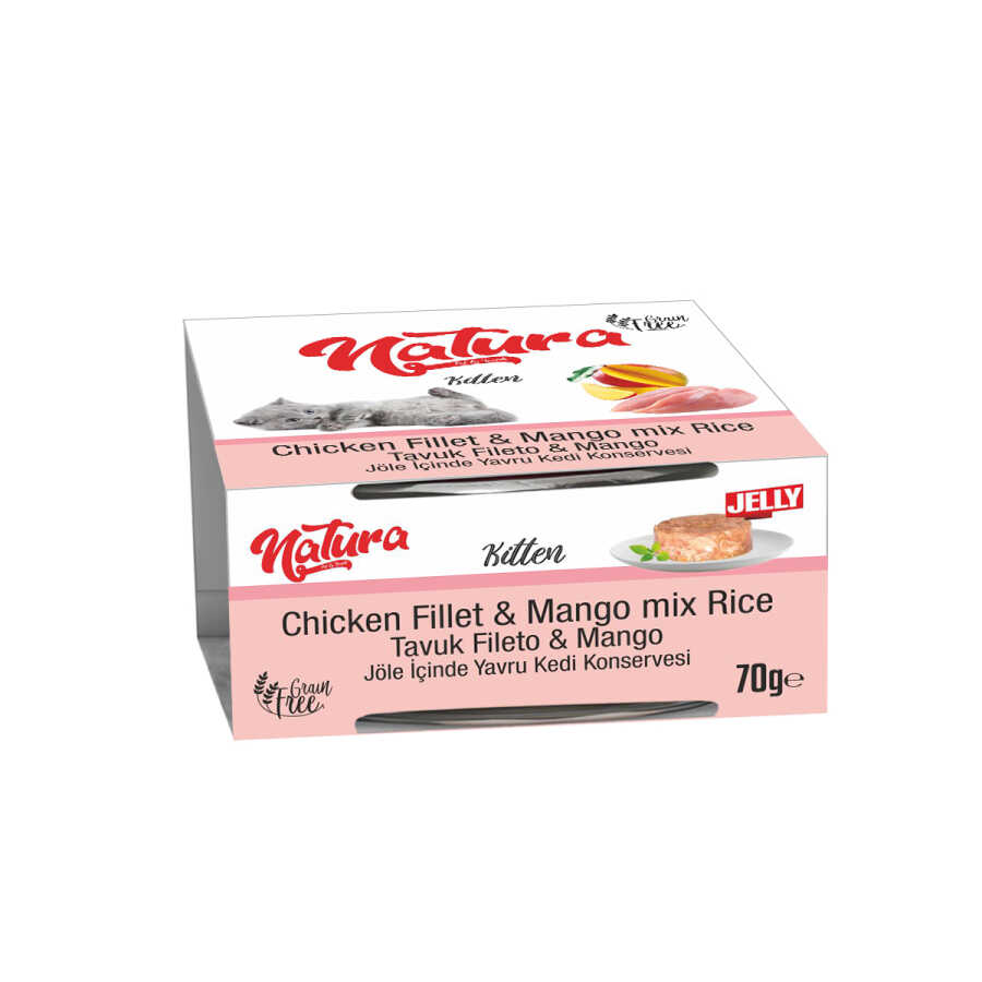 Natura Pet Yavru Kediler İçin Tavuk Fileto ve Mango Mix, yavru kedilerin gelişim dönemine uygun olarak özel içeriklerle hazırlanmıştır. %100 doğal tavuk eti, pirinç ve mango katkısı ile zenginleştirilmiş bu yaş mama, et suyu içerisinde sunulan parça et formundadır. Lezzetli içeriğiyle iştah açarken, vitamin ve mineral yönünden de yavru kedinizin sağlıklı büyümesine destek olur.